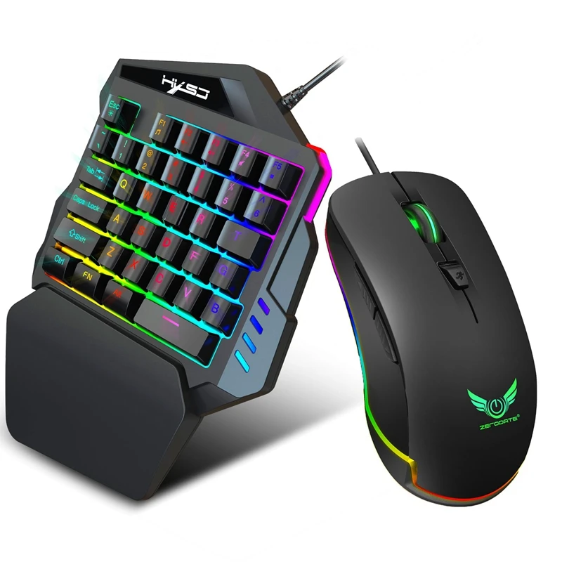 Good Product HXSJ V100+S600 Ergonomic Multicolor Backlight One-Handed Game Keyboard Mouse Set 4800DPI Gamer Gami