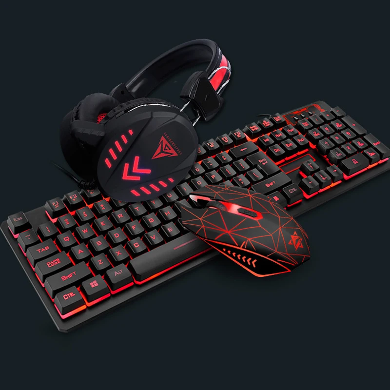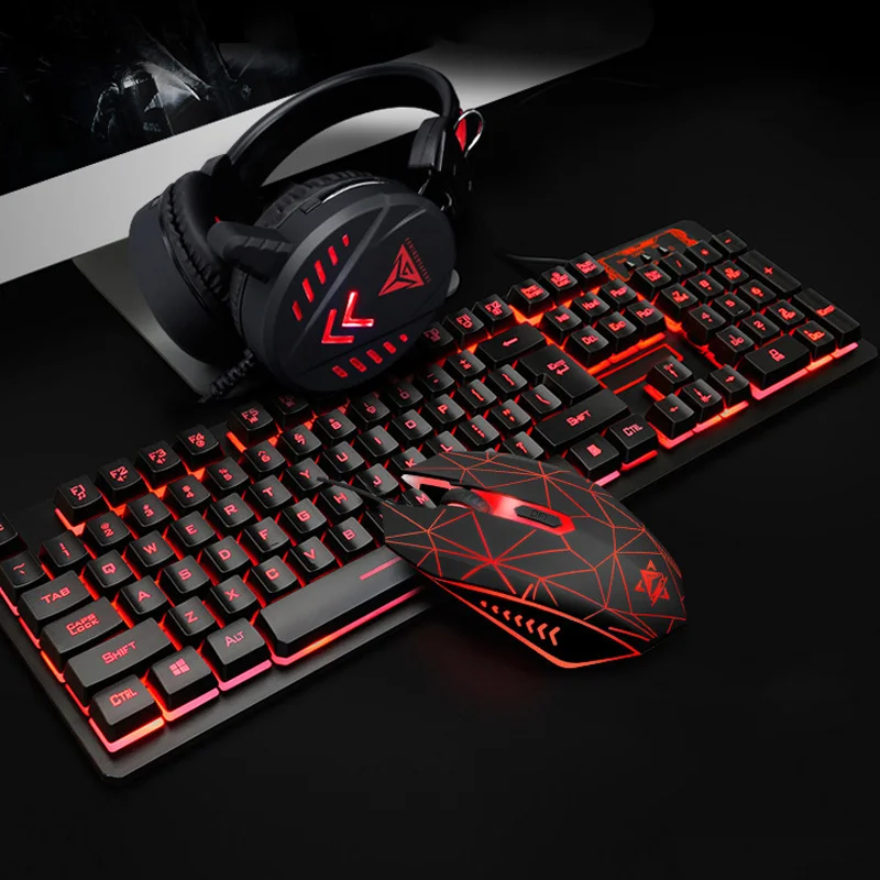 Best Price Gaming Keyboard Mouse Headsets Mouse Pad Set 1600DPI Waterproof Illuminated JHP-Best